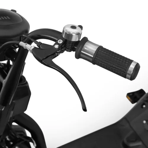 Bicicleta este dotată cu frâne pe tambur atât în față, cât și în spate, oferind o oprire sigură. Anvelopele tubeless de 2,50 – 16 asigură o deplasare lină și stabilă, iar janta de aluminiu adaugă un plus de rezistență.