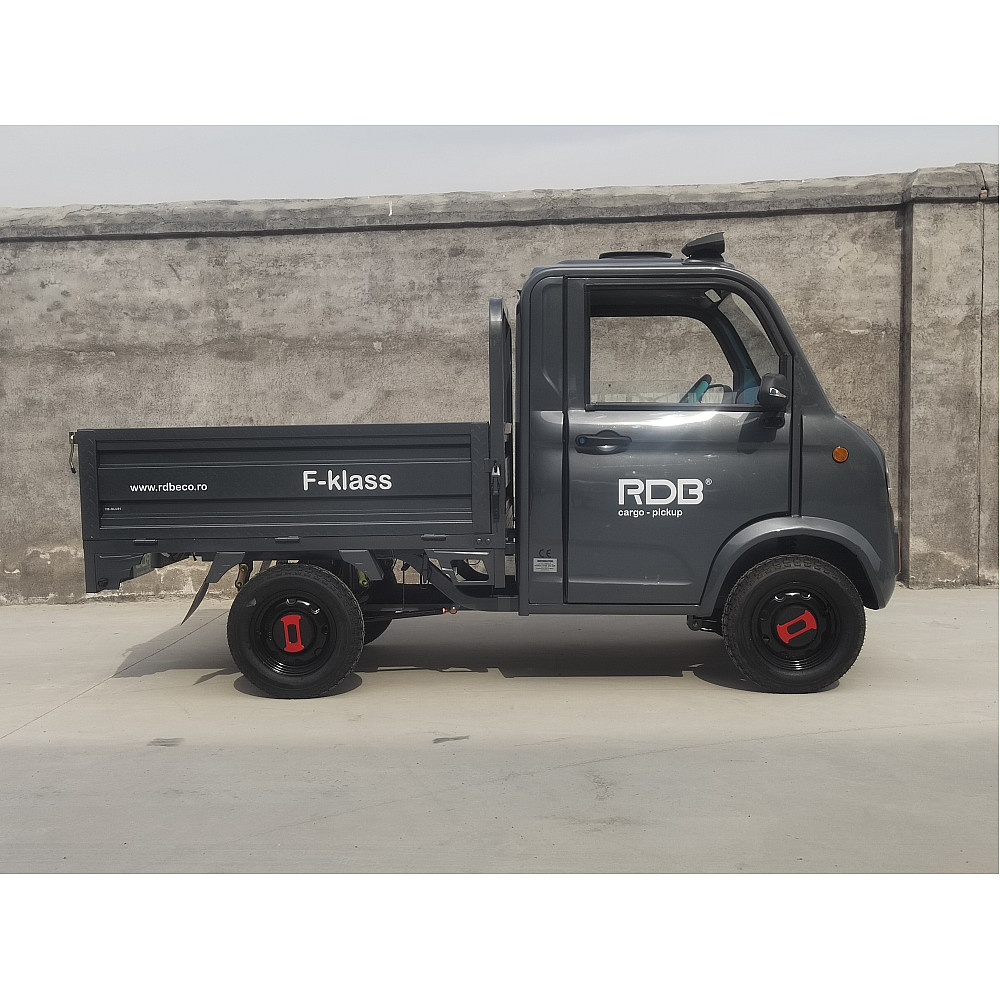 RDB F-KLASS este un vehicul electric de transport marfă, proiectat pentru a satisface nevoile de transport în medii urbane sau industriale. Cu un design robust, această mașină oferă o performanță excelentă și o serie de dotări moderne care asigură un transport eficient și confortabil. Ideal pentru orașe, zone industriale sau șantiere, RDB F-KLASS vine cu o cabină pentru două persoane și o benă cargo pentru încărcături diverse.